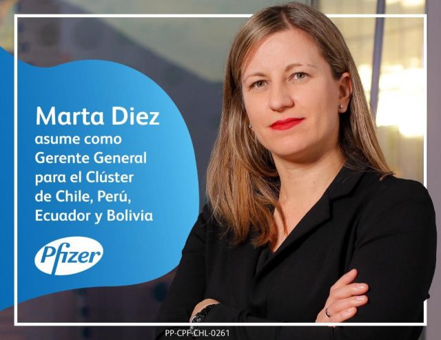 Las mujeres CEOs avanzan en los organigramas de las farmacéuticas en la región. Ahora Marta Diez asumió como gerente para el nuevo cluster de Pfizer conformado por Chile, Perú, Ecuador y Bolivia. Reemplazó a Erika Pagani que tomó la responsabilidad del negocio en Singapur.