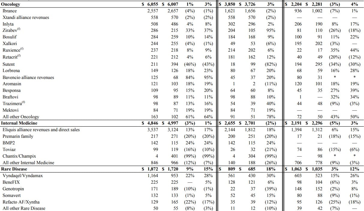 La facturación de sus productos para Enfermedades Raras mostró un salto del 9% en comparación con el mismo período del 2021, a u$s 1.872 millones. Mientras que la unidad de Oncología registró un alza del 1% en el semestre a u$s 6.055 millones, segmento en el que su blockbuster Ibrance, para cáncer de mama, cayó un -4,2% a u$s 2.557 millones.