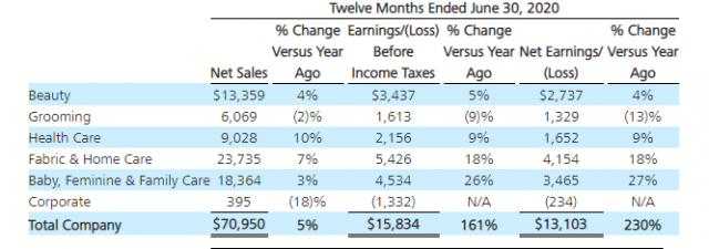 La norteamericana P&G que tiene un calendario fiscal distinto al de la mayoría de las multis, publicó hoy jueves 30 de julio sus resultados anuales del 2020. Ver press release.
