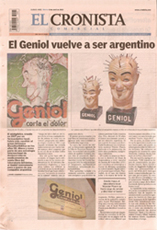 El diario El Cronista, en su edición del martes 9 de abril del 2013, publicó en su contratapa un gran artículo sobre la venta del clásico analgésico Geniol.