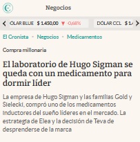 El artículo explica que la empresa de Hugo Sigman y las familias Gold y Sielecki compró uno de los medicamentos inductores del sueño líderes en el mercado.