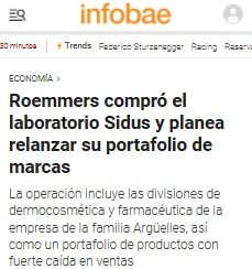 El miércoles 8 de octubre de 2025, el diario El Cronista publicó un artículo sobre la compra del nacional Sidus por parte del también nacional Roemmers. Ver artículo