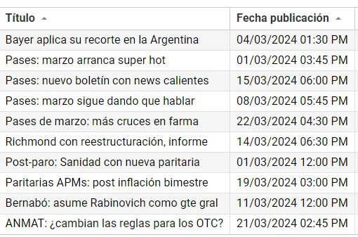 Luego, los cuatro artículos que completaron el top five estuvieron todos referidos a pases. Como cada mes, los lectores buscan estar al día de las grillas de las empresas nacionales y de capitales extranjeros. Siguiendo esta línea, el que surgió segundo fue el artículo titulado «Marzo arranca super hot«, tercero quedó el informe llamado «Nuevo boletín con news calientes«,  cuarto quedó «Marzo sigue dando de qué hablar«, y quinto, «Pases de marzo: más cruces en farma«. Todos enviados vía newsletterVer Marzo super hot // Ver Pases: nuevo boletín con news calientes // Ver Pases marzo sigue dando de qué hablar // Ver Pases de marzo: más cruces