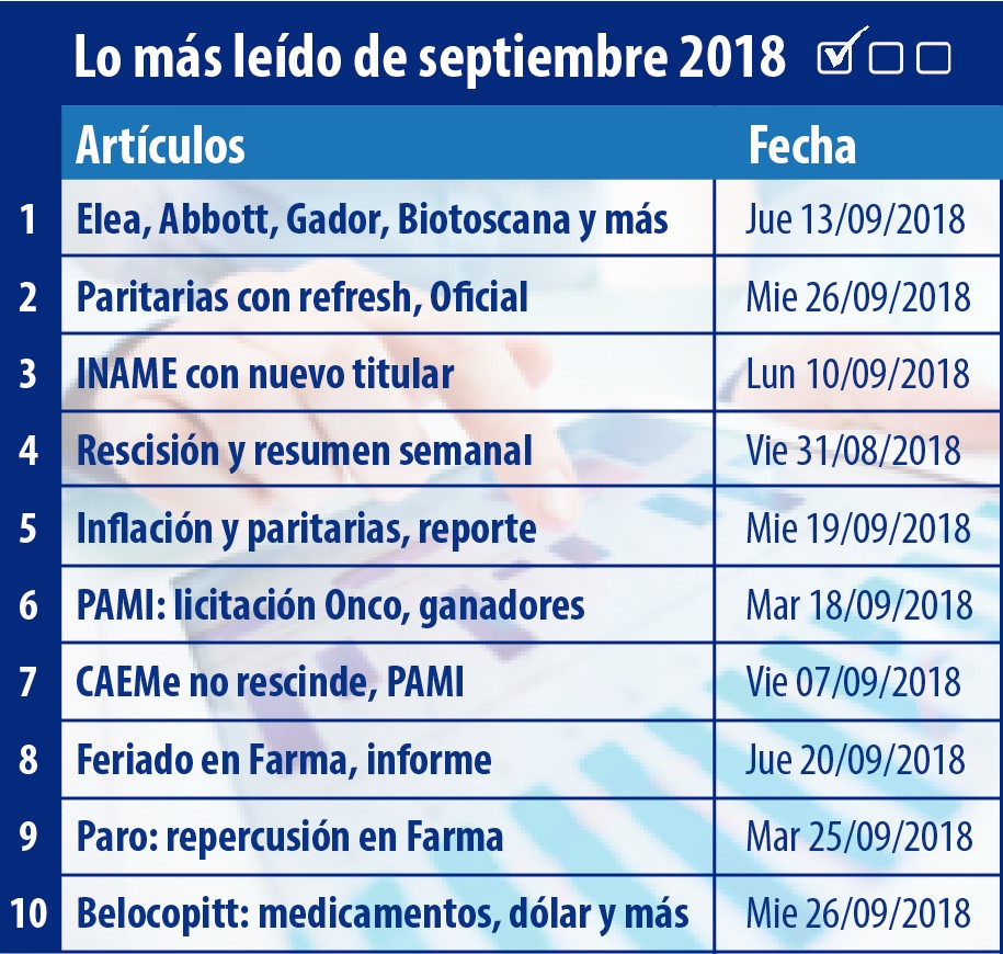 Los temas paritarios estuvieron sin dudas en el centro de la atención de nuestros lectores durante septiembre. Pharmabiz publicó en calidad de primicia la actualización cerrada con el gremio FATSA a la vez que realizó un amplio informe reflejando el status de cada convenio.