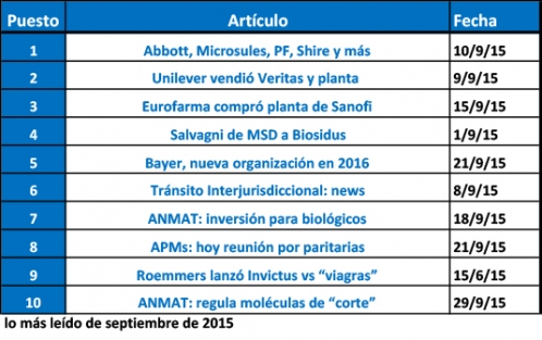 Pharmabiz realizó un raconto de lo más leído del mes de septiembre que acaba de cerrar. Al tope del interés estuvo nuevamente un artículo de pases y nombramientos, los siguen concentrando gran atención. En el mismo se ponía el foco en los cambios acontecidos en las multis, en donde los pases están a la orden del día. Ver artículo.