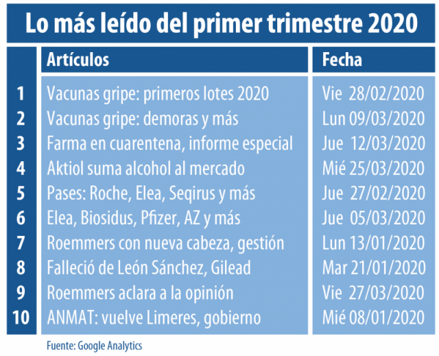 Los pases y nombramientos, en tanto, siguieron concentrando gran atención e interés. Un reporte publicado a fines de febrero se instaló para completar el top five de lo más leído de este primer tramo del año. Allí el tema principal fue un nuevo capítulo de la saga de desvinculaciones en la filial argentina de la suiza Roche. Ver artículo.