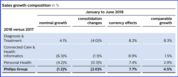 La holandesa Philips dio a conocer sus resultados del primer semestre del 2018. La multi anunció un crecimiento en sus ventas globales del 4.5%, con ingresos por € 8.2 mil millones. Ver press release.