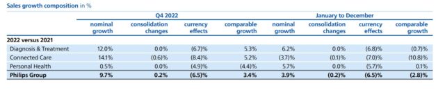 El 2022 no fue un buen año para Philips, y así ya acumula dos años consecutivos de caída. Según su último balance de resultados, el año pasado la multi registró una baja en sus ventas del -3%. Ver press release.