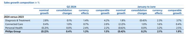 La neerlandesa Philips facturó € 8.600 millones en la primera mitad del 2024, lo que se traduce en una suba del 1,9% en ventas comparables. Diagnosis & Treatment fue la unidad de mejor desempeño, con un alza del 3,7%.