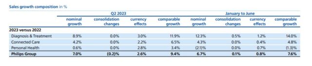 La base de comparación favoreció a la performance de Philips en esta primera mitad del 2023. Es que en el semestre inicial del 2022 la neerlandesa descendió un -5% en ventas a nivel global. En contrapartida, este año creció un 8%. Ver reporte