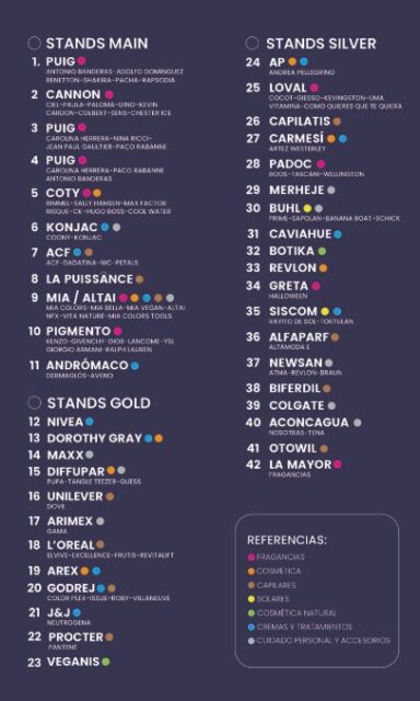 Algunas de las empresas que estarán presentes son la española Puig, las norteamericanas Coty, Revlon, Colgate, J&J y P&G; la alemana Beiersdorf, la india Godrej, y las nacionales Biferdil, Capilatis, Andrómaco, Cannon, y Otowil, entre otras.