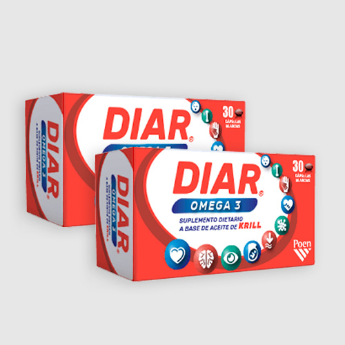 El grupo multilatino Mega Pharma lanzó al mercado local Diar. El suple basado en aceite de krill se comercializa bajo el brazo del laboratorio Poen a través de un packaging súper vistoso que resume con íconos las funcionalidades del producto.