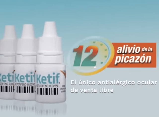 Se trata de un antialérgico ocular de venta libre para el alivio de la picazón, una de las principales reacciones después de los estornudos. «Que la alergia ni te mire», dice el aviso publicitario de la solución en gotas a base de ketotifeno. Ver sitio Ketif