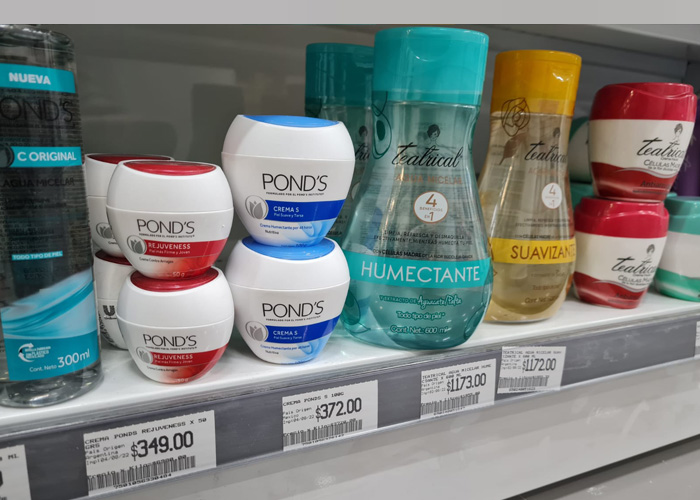 En góndola, Pond’s compite, a su vez, con otras líneas como las de Nivea Cuidado 5, cuyo formato es muy similar al de Pond’s y al de Teatrical. En cuanto a precio, las versiones de Nivea se comercializan en un rango que va desde los $505 (u$s 3,58) a los $575 (u$s 4,08), mientras que las de Pond’s figuran a un precio de $349 (u$s 2,48) y de $372 (u$s 2,64), es decir un -30% más económicas que las de Nivea. En tanto, Teatrical se lista a un precio sustantivamente mayor, a $887 (u$s 6,30).*