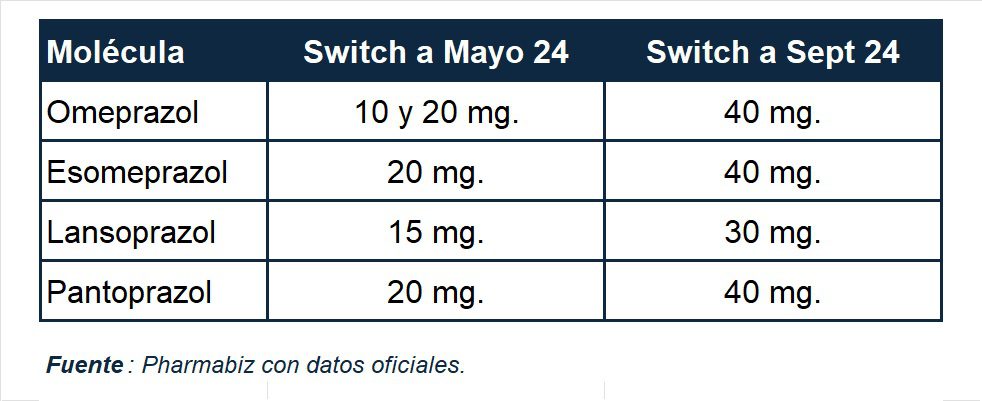 En el caso de los esomeprazoles, los que quedan incluidos en la nueva medida son por caso, Esomax de Eurofarma con presentaciones de 40 mg; Alprezal de Lazar, con una presentación de 40mg; y Prazodex de Dominguez con una variante de 40 mg., entre varias otras marcas.