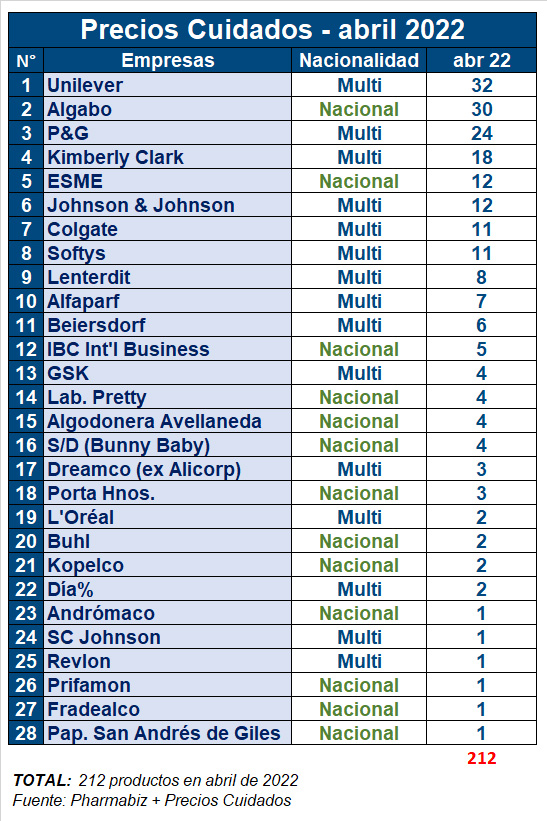 Al igual que en ediciones anteriores, el equipo de analistas de Pharmabiz relevó las compañías y las marcas del sector que participan en esta extensión del programa. Como ya es habitual, las multis siguen llevándose el protagonismo. Ver listado Precios Cuidados abril 2022