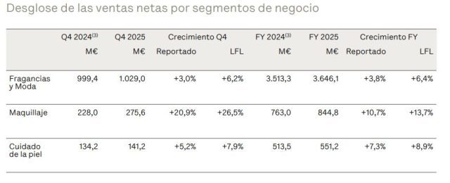 De acuerdo con el documento, la multi catalana facturó €5.042 M, frente a los €4.790 M de 2024. El negocio que registró el mayor crecimiento fue el de Makeup, que reportó un alza del 10,7% a €844,8 M.