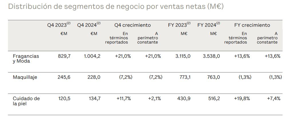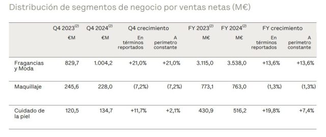 Por su parte, la división de Fragancias y Moda sigue siendo la más importante, con ingresos de €3.538,0 millones, y un crecimiento del 13,6%. Aquí se cita particularmente la performance de la marca Jean Paul Gaultier, que según la catalana «completó un año sobresaliente». Por otro lado, las ventas de la cartera de Makeup cayeron un -1,3% a €763,0 millones.