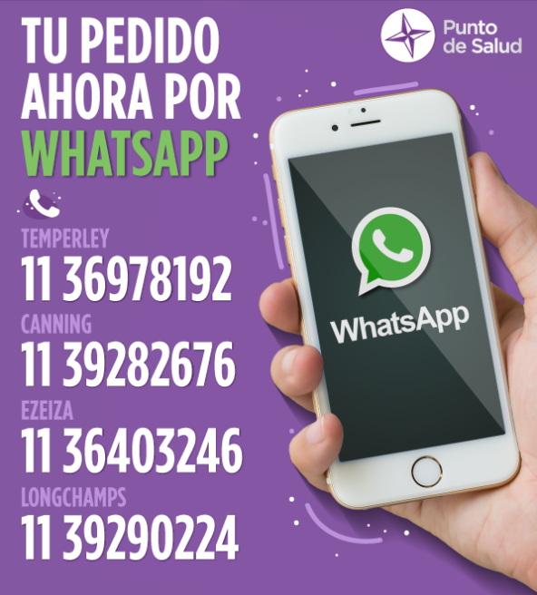 La cadena de farmacias Punto de Salud implementó el delivery por Whatsapp en sus locales de Temperley, Canning, Ezeiza y Longchamps.