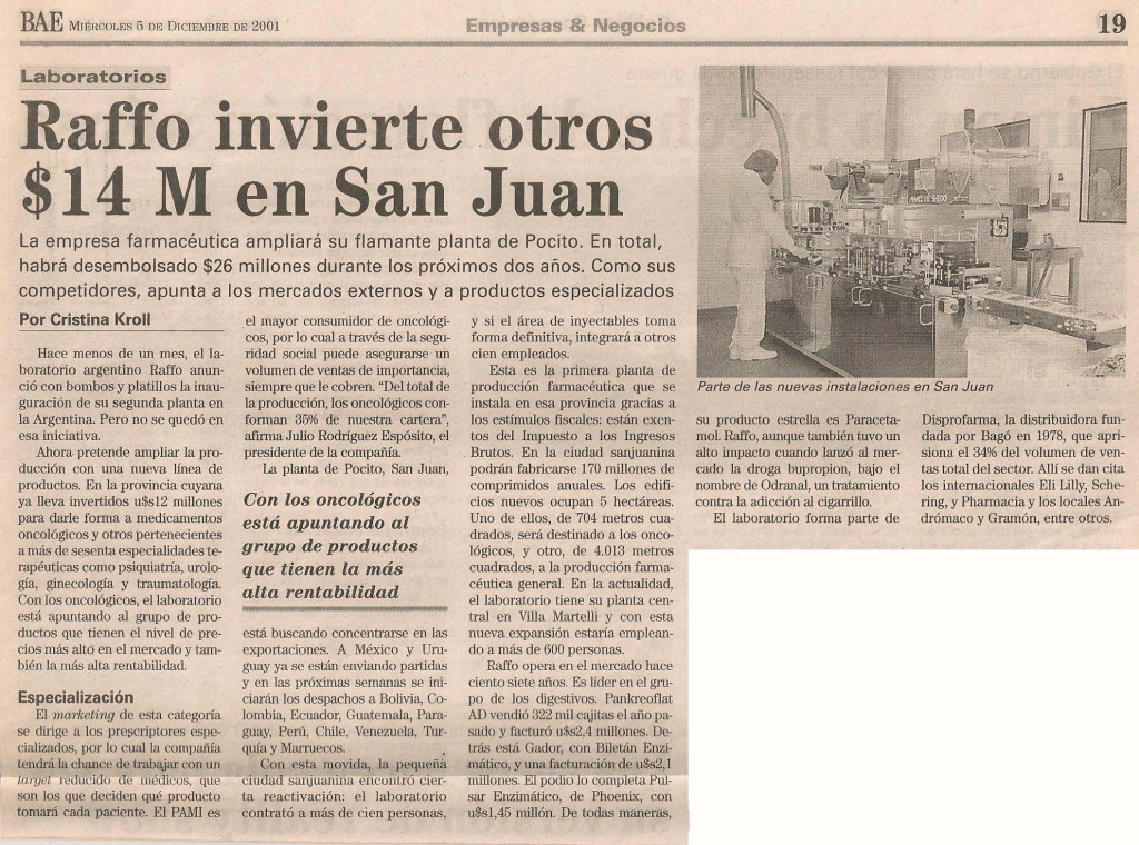 Hace menos de un mes, el laboratorio argentino Raffo anunció con bombos y platillos la inauguración de su segunda planta en la Argentina. Pero no se quedó en esa iniciativa.