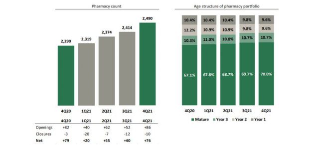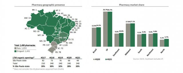 La brasileña RaiaDrogasil, la cadena de farmacias más importante de Brasil, presentó los estados contables de su último ejercicio económico, cerrado el pasado 31 de diciembre. Impulsado en buena medida por la recuperación de la actividad económica en el vecino país, finalizó 2021 con ingresos de R$ 25.605 (u$s 5.040 millones), una mejora del 20,9% frente al 2020. Ver Press Release.