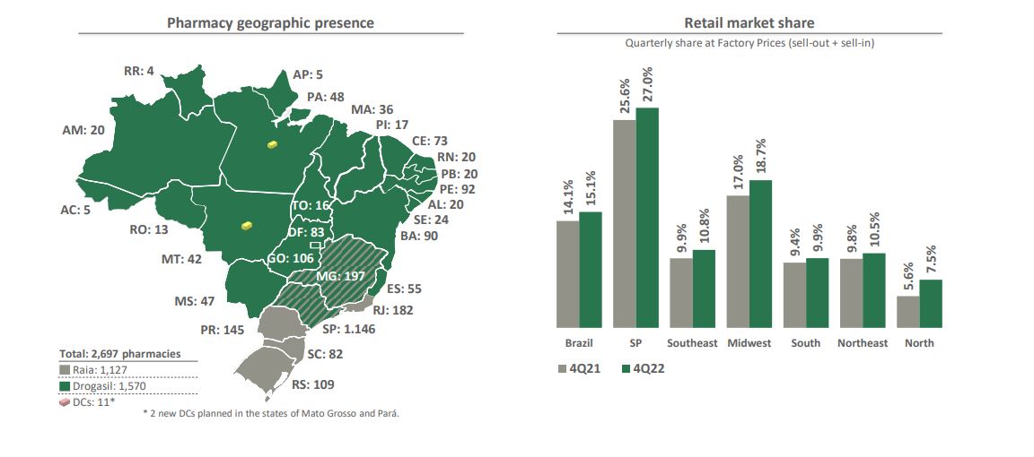 En su informe de resultados, RaiaDrogasil explicó que sus ventas a través de canales digitales registraron un incremento del 52,7% interanual y ya representan el 11,8% del total. Por otro lado, destacó que «llegamos a 47,5 millones de clientes activos en los últimos 12 meses, un aumento relevante de 5,2 millones de nuevos clientes en el año». Por otro lado, señaló que su market share a nivel nacional creció 1,0 puntos porcentuales a un total de 15,1%.
