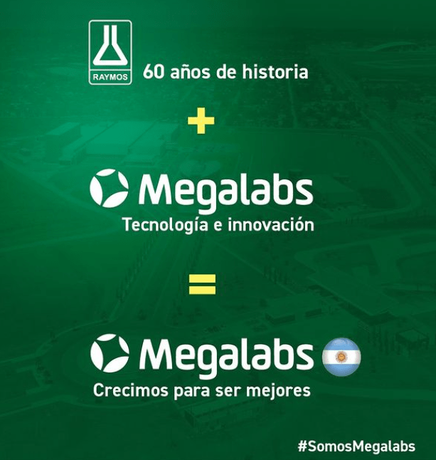 El laboratorio Raymos cambió oficialmente su nombre para reflejar que forma parte del grupo latino Megalabs. La firma se rebautizó justamente como «Megalabs» y ya utiliza su nuevo logo junto al slogan «Crecimos para ser mejores«.