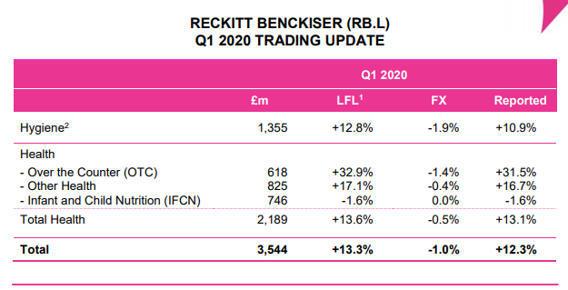 De acuerdo a la agencia de noticias Reuters, el crecimiento en las ventas de RB fue incluso mayor que el que anotaron otras multis del sector que comercializan productos en las mismas categorías, como Unilever y P&G. Aunque todas ellas se vieron beneficiadas por el aumento en la demanda y el stockeo de los consumidores previo al confinamiento global. Ver artículo.