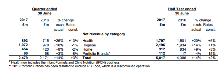 La británica Reckitt Benckiser anunció sus resultados semestrales. Ver press release.