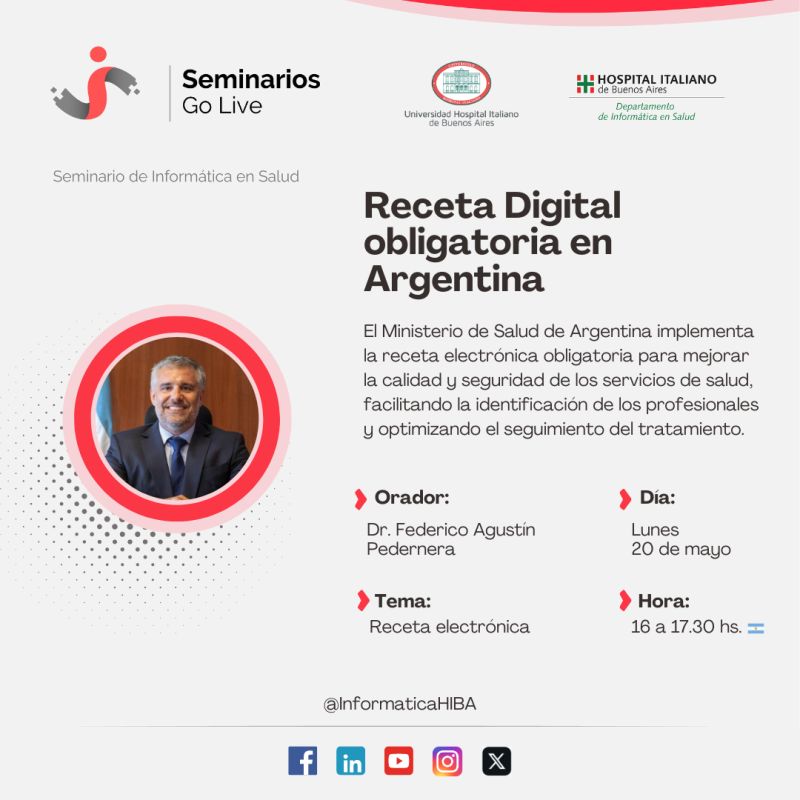 La receta en papel tiene fecha de vencimiento. Por eso, el Departamento de Informática en Salud y la Universidad Hospital Italiano de Buenos Aires organizaron un seminario para hablar sobre la receta digital, que será obligatoria desde julio. El encuentro online estuvo a cargo del subsecretario de Vigilancia Epidemiológica, Información y Estadísticas de Salud del Ministerio de Salud de la Nación, Federico Pedernera.