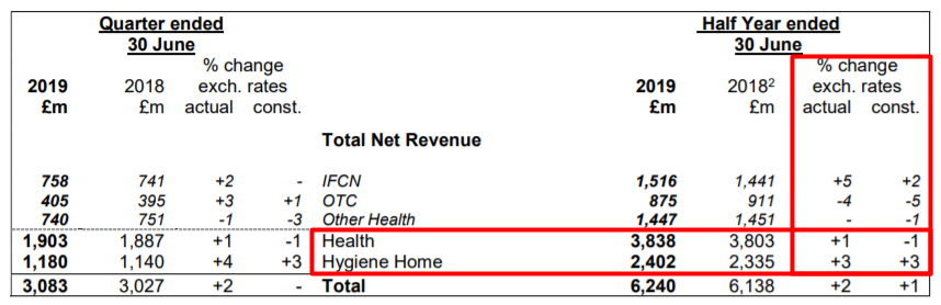 La británica Reckitt Benckiser anunció el martes 30 de julio sus resultados financieros para el primer semestre del 2019. Ver press release.
