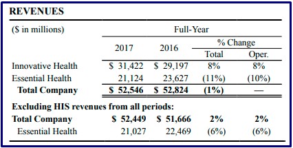 En tanto, su negocio de Productos Establecidos alcanzó ingresos por u$s 21.124 millones, lo que significó una caída del -10% respecto del 2016. Dentro de esta unidad, la única línea que se vigorizó fue la de Biosimilares, que exhibió un alza del 66% en su facturación.