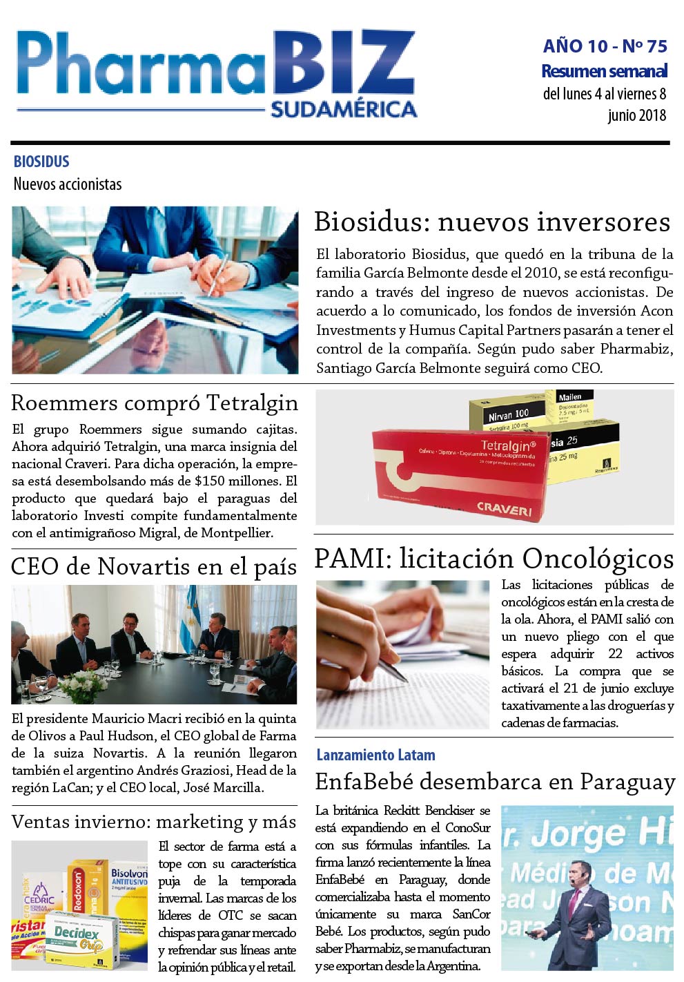 Los laboratorios nacionales fueron los grandes protagonistas de la semana. Por un lado, Biosidus anunció que dos fondos de inversión pasarán a tener el control de la compañía. Mientras que el grupo Roemmers adquirió Tetralgin, una marca insignia del nacional Craveri.