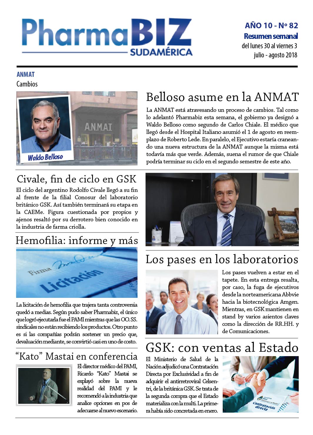 Esta semana resaltó por dos cambios de alto rango. Por un lado la ANMAT ya tiene sentado a un nuevo número dos. Se trata del médico Waldo Belloso el que reemplazó al saliente Roberto Lede. En paralelo terminó el ciclo del CEO argentino Rodolfo Civale quien estaba a cargo de la filial Cono Sur de GSK.