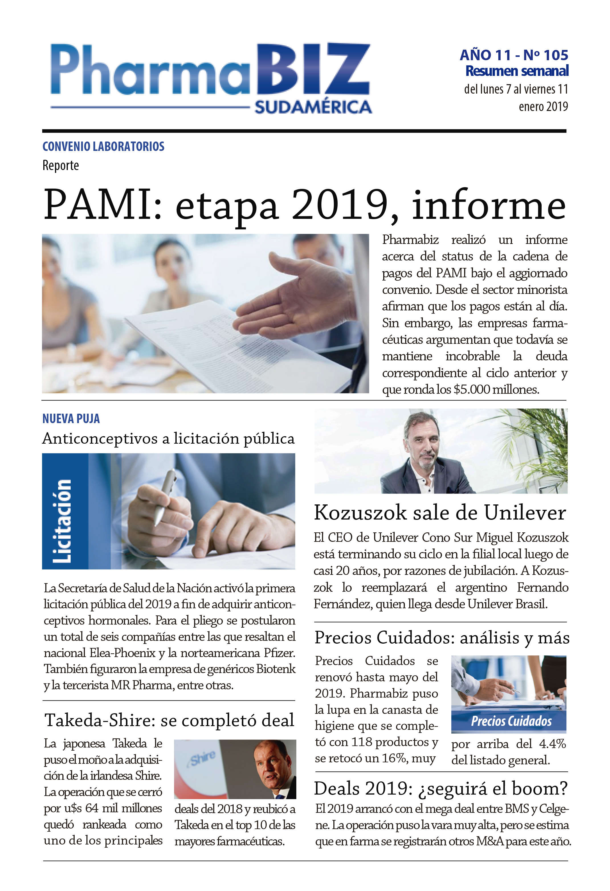 La agenda de Farma durante la segunda semana de enero del 2019 estuvo marcada por el cierre de la adquisición de Shire por parte de la japonesa Takeda. También por un nuevo capítulo del tema PAMI-Industria; la primera licitación pública del año; y por la renovación del programa Precios Cuidados.