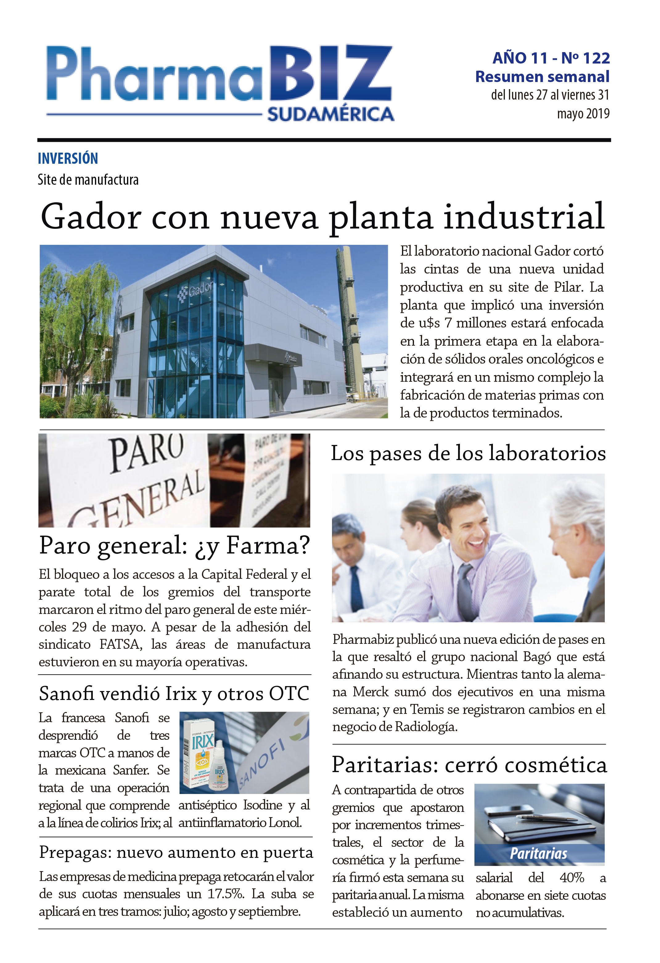 En el área industrial, el laboratorio nacional Gador inauguró una nueva planta en el Parque Industrial de Pilar. La unidad estará enfocada en esta primera etapa en la elaboración de sólidos orales oncológicos e integrará en un mismo complejo la fabricación de materias primas con la de productos terminados. Ver artículo.