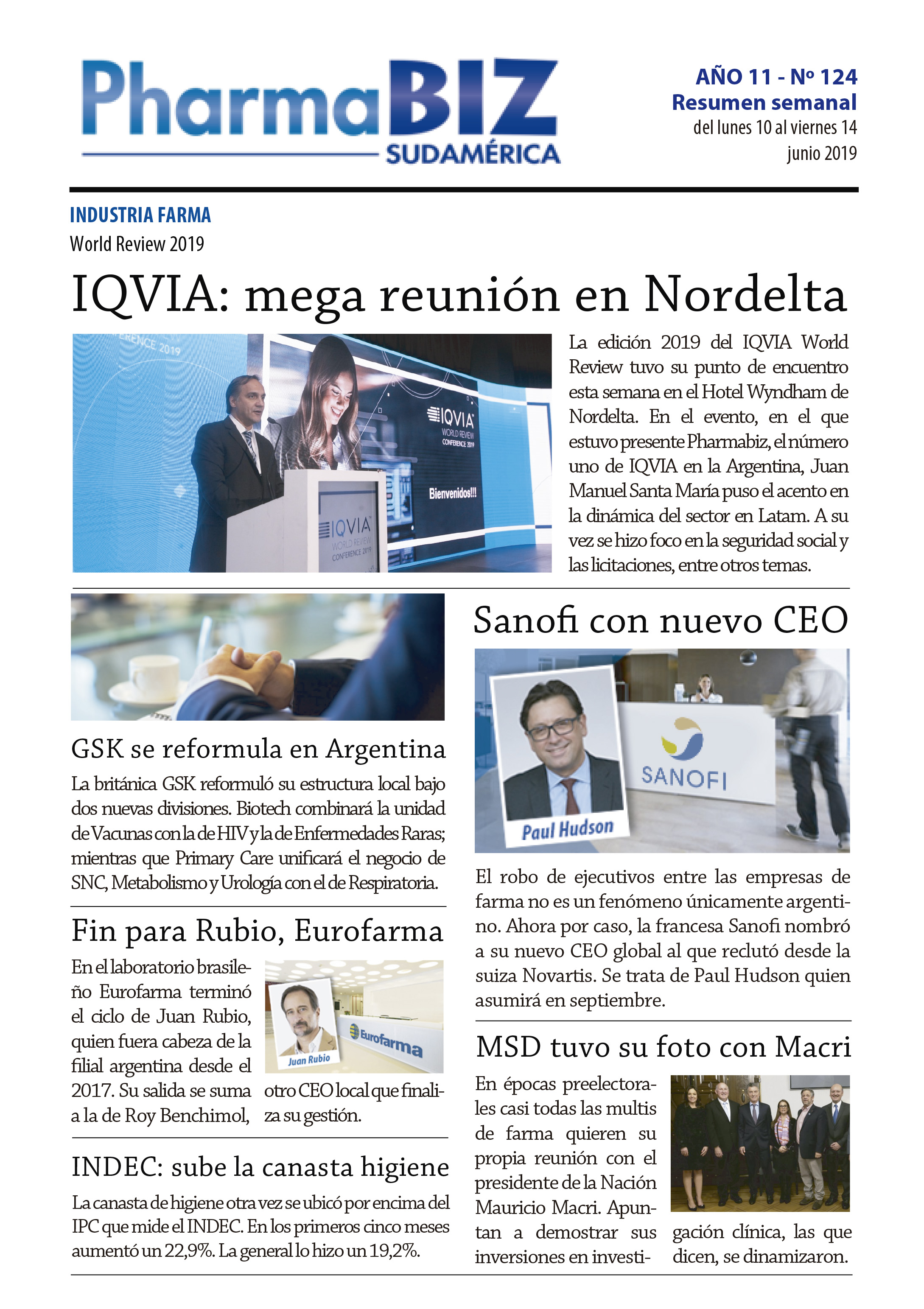 Mientras tanto, en la Argentina, el mega evento de Farma IQVIA World Review reunió a todo el sector a fin de trazar las perspectivas y tendencias. Se resaltaron, por caso, los desafíos relativos a la cobertura de nuevos productos y también se detalló que el mercado de medicamentos de receta en el canal minorista local registró una caída del -8% en unidades de dosis en lo que va del 2019. Ver artículo