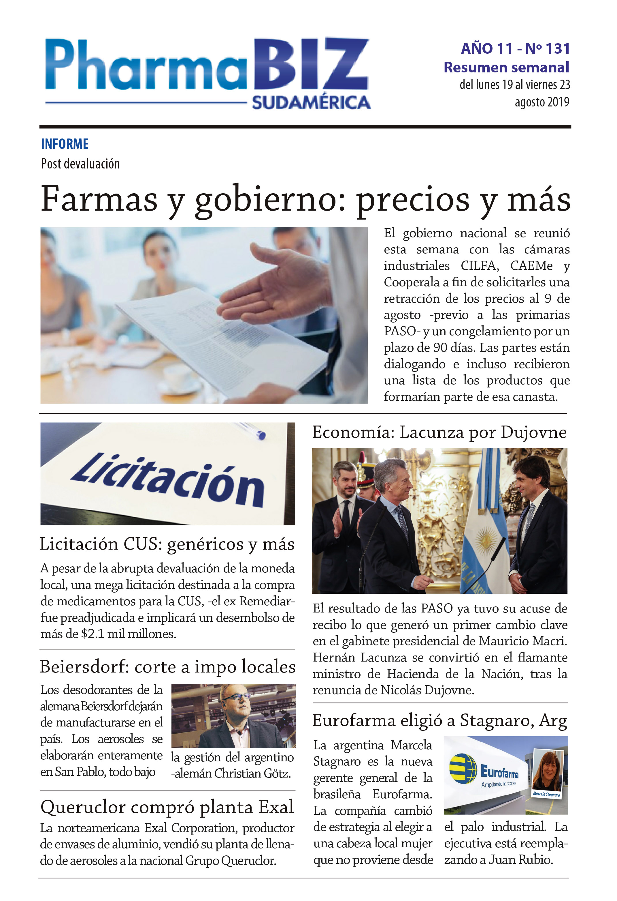 Fue en la misma semana que asumió Hernán Lacunza como Ministro de Economía, en reemplazo del renunciante Nicolás Dujovne. Y el contexto devaluatorio no fue obstáculo para que avance una licitación pública que destinará $2.130 millones (u$s 37.3 millones) para la compra de medicamentos básicos para la CUS, el formato que reemplaza al ex Remediar. Ver artículo Ver artículo