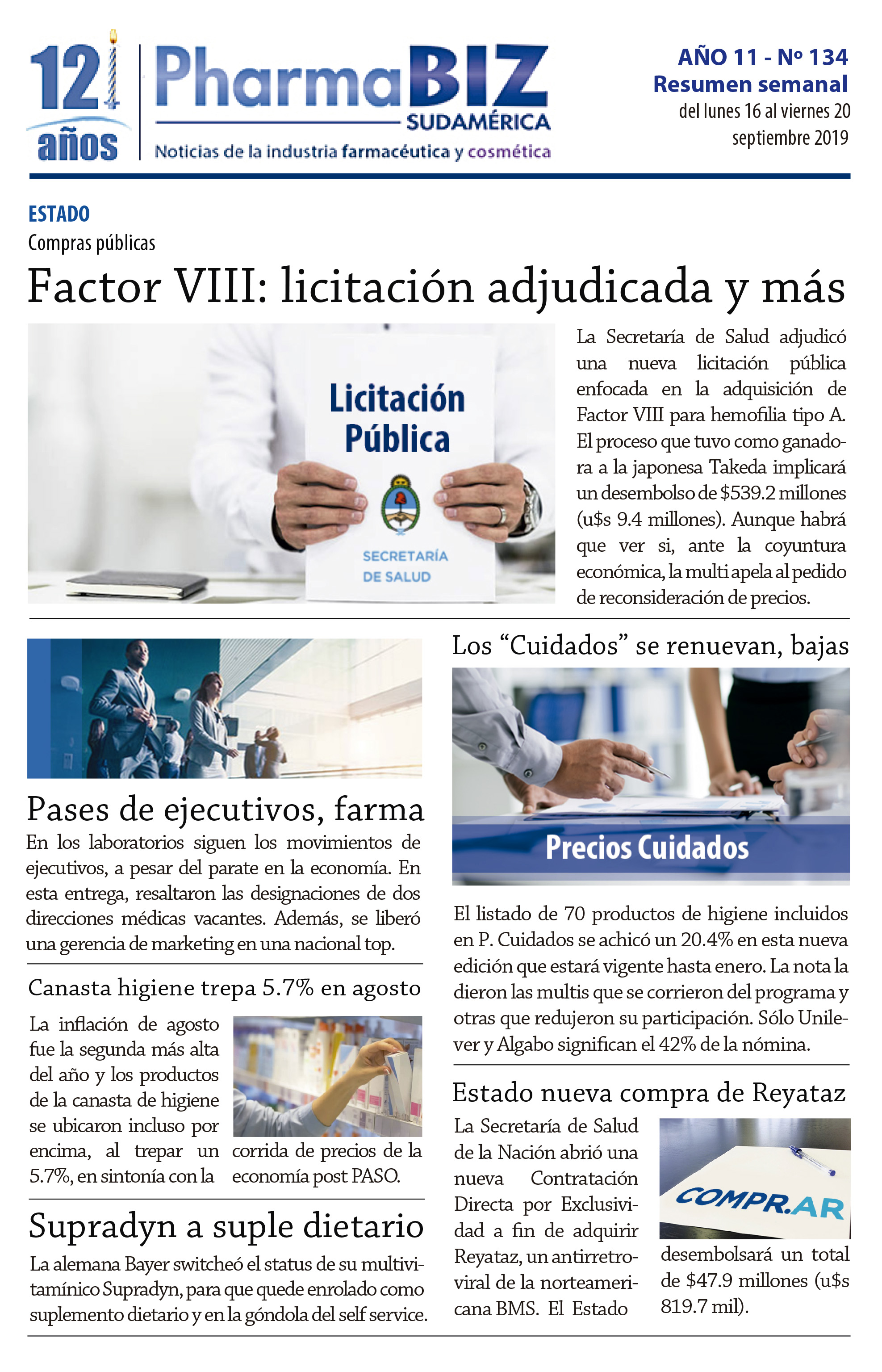 Las compras públicas de medicamentos y las decisiones gubernamentales en la previa de las elecciones presidenciales de octubre están dando la nota durante este mes. Resalta por caso la adjudicación de la mega licitación de factor VIII para hemofilia tipo A. También la renovación hasta enero del programa Precios Cuidados.