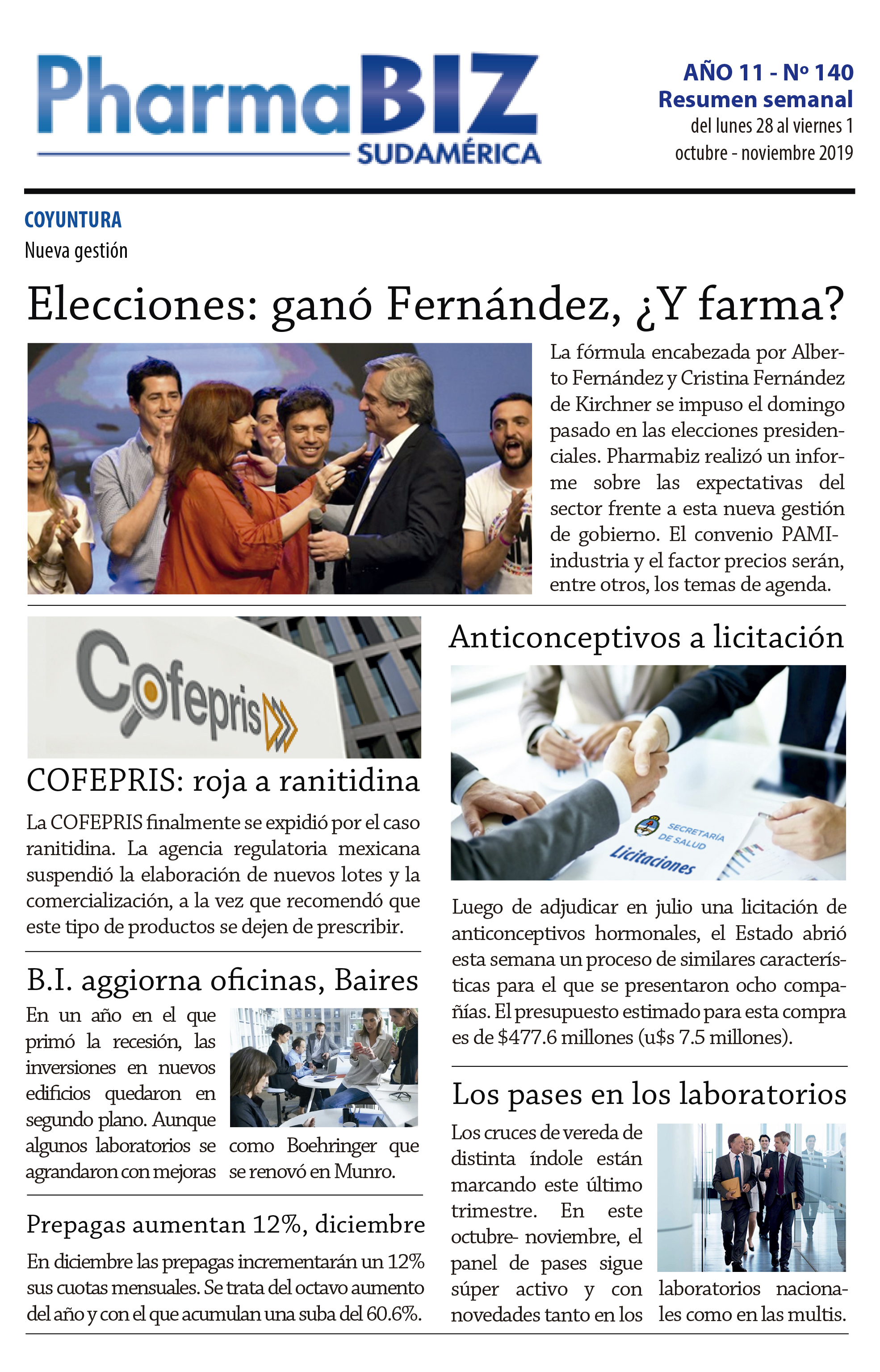 Esto en función de que el domingo pasado se eligió en primera vuelta a Alberto Fernández como el nuevo presidente de la Argentina. La gestión Fernández-Fernández que asumirá a mediados de diciembre en reemplazo de la de Mauricio Macri tendrá sobre la mesa múltiples desafíos por delante. Y es en este contexto que el sector de farma tendrá su propio capítulo. Allí el factor «precios» y el convenio PAMI-Industria serán algunos de los temas a revisar. Ver artículo