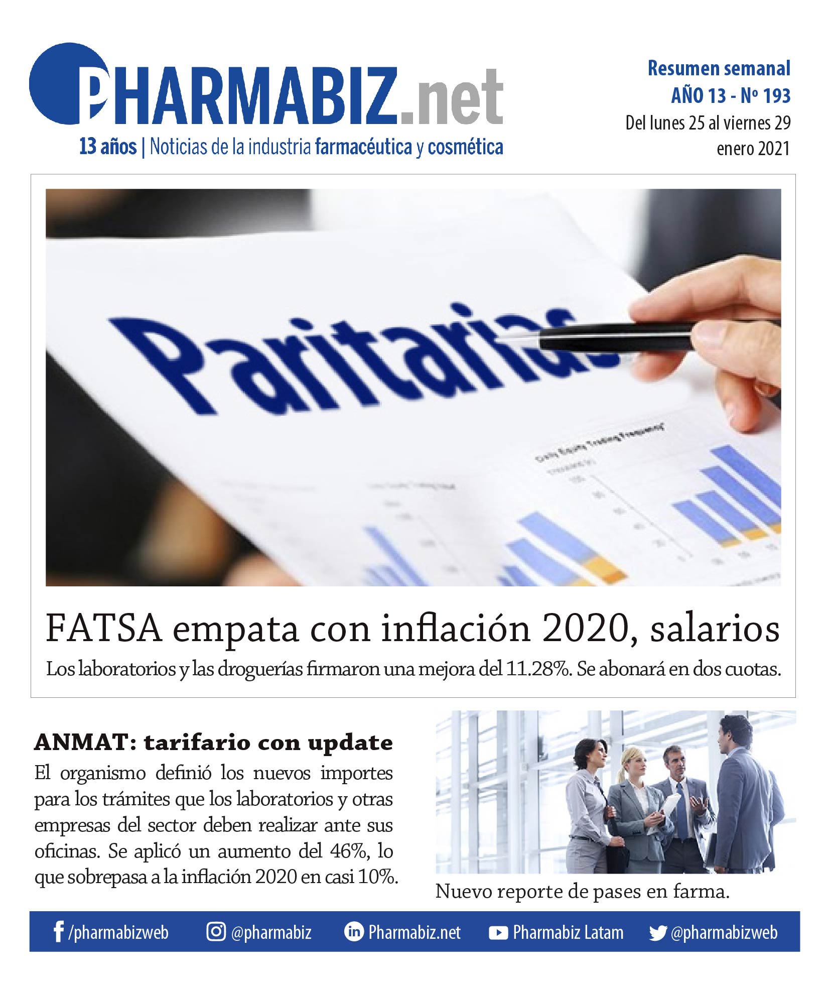 En sintonía, la ANMAT se puso a tono con la inflación y publicó su nuevo tarifario 2021. A partir de este enero, los trámites que los laboratorios y otras empresas del sector deben realizar ante las oficinas de la agencia local tendrán un aumento del 46%, lo que sobrepasa en un 10% a la inflación anual 2020 dada a conocer por el INDEC. Ver artículo.