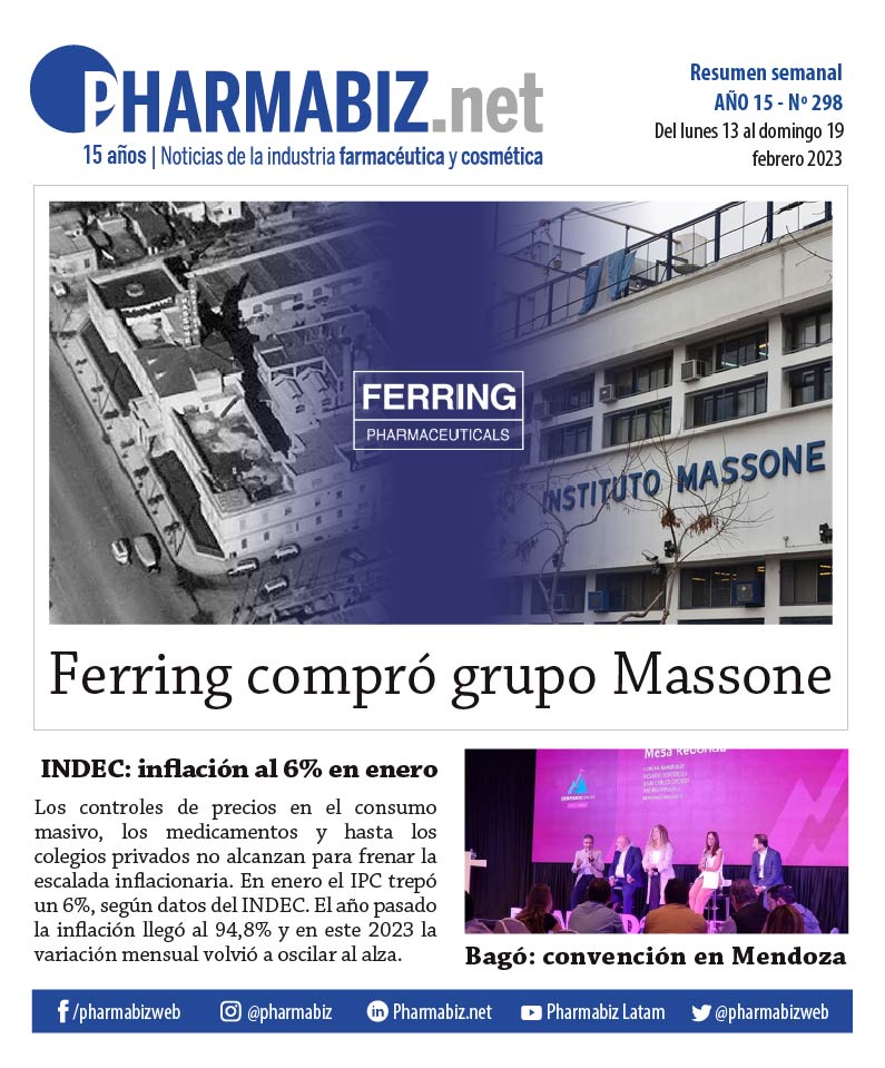 Otro tema de interés en la semana fue la compra por parte de la suiza Ferring del grupo de capitales nacionales Massone, y sus dos plantas de producción en la Argentina especializadas en APIs. En total se realizó un desembolso cercano a los u$s 28,5 millones por parte de la multi enfocada en Salud Reproductiva. La empresa conservará el equipo que ronda los 500 trabajadores. Ver artículo Ferring.