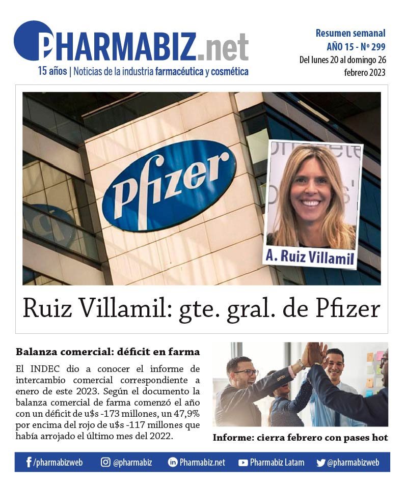 En paralelo, la norteamericana Pfizer se subió a la agenda informativa al elegir a su titular para la Argentina. La médica Agustina Ruiz Villamil, quien llega desde la suiza Novartis, reemplazará a Nicolás Vaquer, y su día uno también será el miércoles 1º de marzo. Hasta el momento ejercía como CEO interina Romina García Vila. Ver artículo Pfizer: Villamil Gte. Gral.