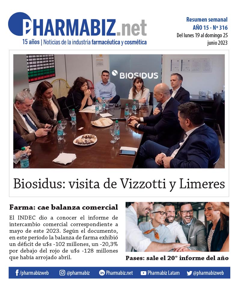 El laboratorio Biosidus llegó a la tapa en función de que recibió a una comitiva del Ministerio de Salud de la Nación, encabezada por Carla Vizzotti y Manuel Limeres. La reunión tuvo lugar en su planta ubicada en el barrio porteño de Boedo, enfocada en la producción de principios activos farmacéuticos. Ver artículo Biosidus