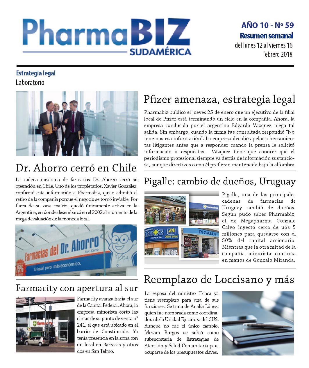 Además de esto, desde el ámbito privado el claro protagonista fue el laboratorio Pfizer. Su gerente general del negocio de maduros Edgardo Vázquez arremetió enviando una carta documento a Pharmabiz ante un artículo publicado el jueves 25 de enero. Fue en relación a la salida de un ejecutivo de la compañía, hecho que la empresa negó después de su publicación. Sin embargo, cuando la firma fue consultada se limitó a decir “No tenemos esa información”. La empresa apeló a herramientas litigantes antes que a responder de forma detallada. Lamentamos esta decisión de la compañía, a la vez que ratificamos la información difundida por este medio. Ver artículo.