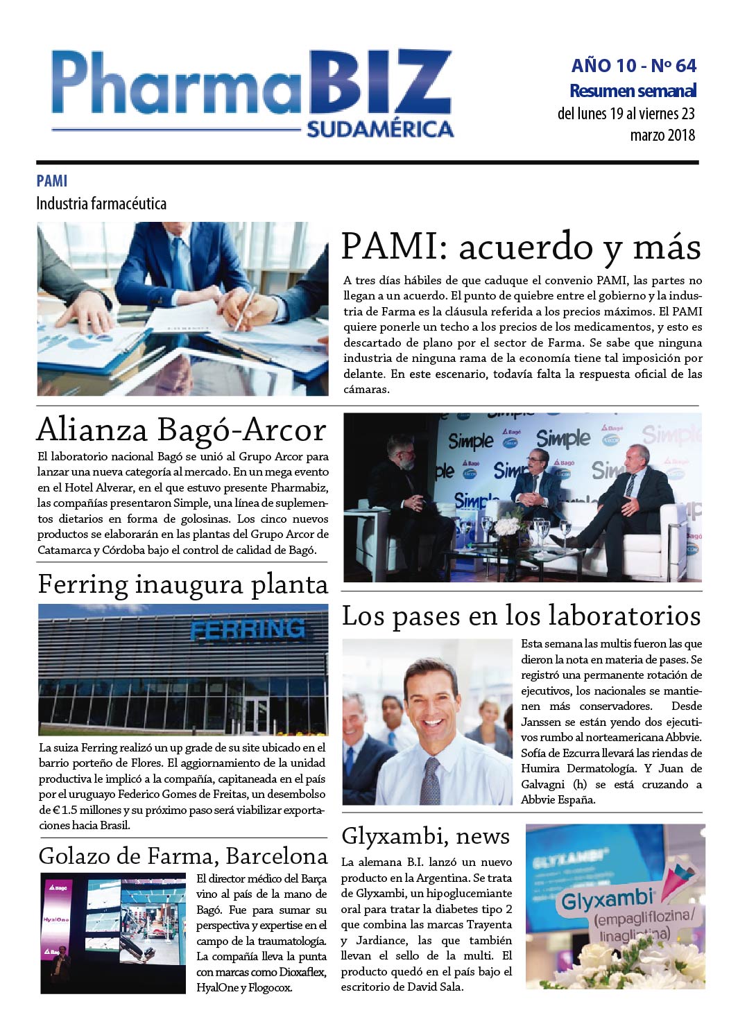 Otro tema que se subió a la tapa de Pharmabiz fue el que tuvo como protagonistas a dos multilatinas de origen argentino. Se trata del grupo nacional Bagó y del Grupo Arcor, que cerraron una alianza y lanzaron una nueva categoría al mercado. En un mega evento en el Hotel Alvear, en el que estuvo presente este medio, las empresas presentaron Simple, una línea de suples dietarios en forma de golosinas, que estará en los puntos de venta desde abril. Los nutracéuticos serán manufacturados en las plantas que Arcor tiene en Catamarca y Córdoba bajo el control de calidad de Bagó. Ver artículo
