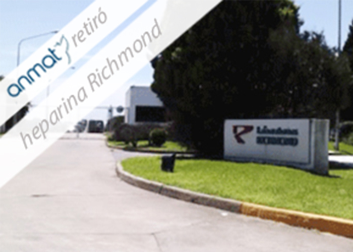 La ANMAT retiró del mercado un lote de heparina sódica del laboratorio nacional Richmond y le abrió un sumario sanitario a la compañía y a su director técnico.