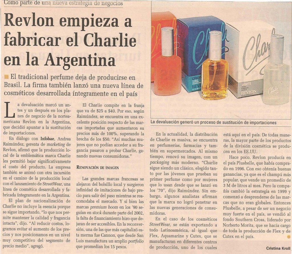 En diálogo con Infobae, Andrea Raimúndez, gerenta de marketing de Revlon, afirmó que la producción local de la emblemática marca Charlie les permitió bajar significativamente el costo del producto. La empresa también se animó con otra incursión en el camino de la producción local con el lanzamiento de StreetWear, una línea de cosmética desarrollada y fabricada íntegramente en la Argentina.