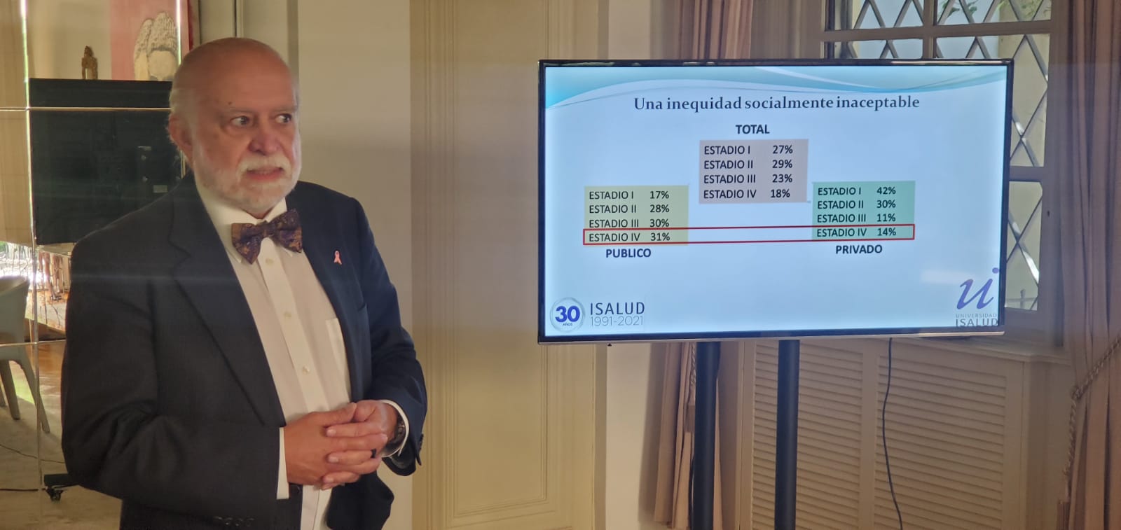 En el encuentro se dio a conocer que de acuerdo al informe «Situación actual del Diagnóstico y Tratamiento del Cáncer de Mama en Argentina» realizado por la Universidad iSalud en el 2020, las mujeres con cáncer de mama en estadio avanzado en el sector público duplican al privado. Esto se debe tanto a barreras estructurales y socioculturales, como a la diferencia en relación con la amplitud de tratamientos disponibles en el ámbito privado versus el público.