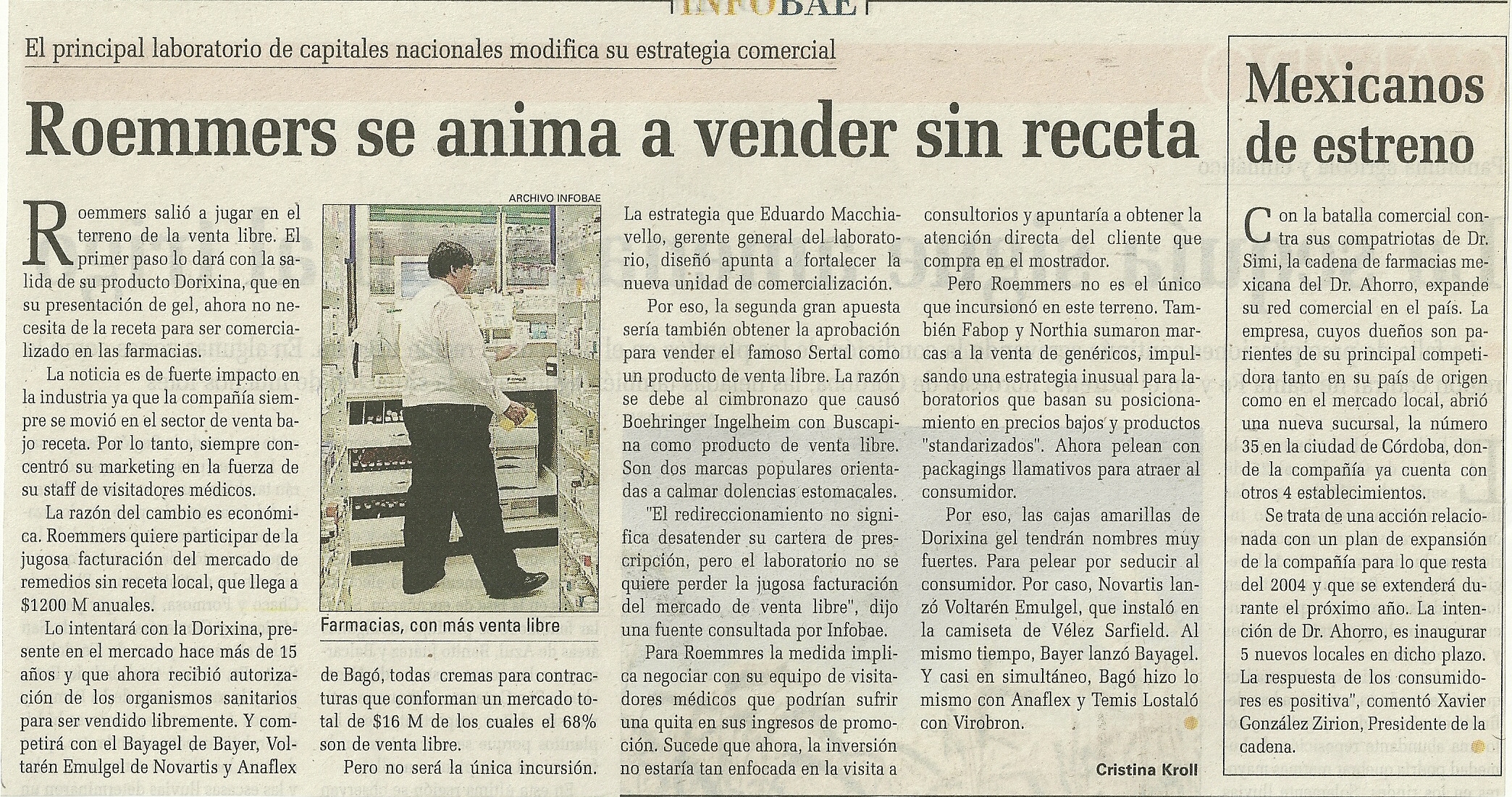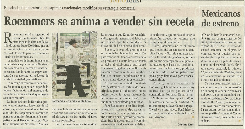 La razón del cambio es económica. Roemmers quiere participar de la jugosa facturación del mercado de remedios sin receta local, que llega a $1200 M anuales.